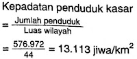 Kepadatan penduduk kasar bisa kita hitung rumus berikut: